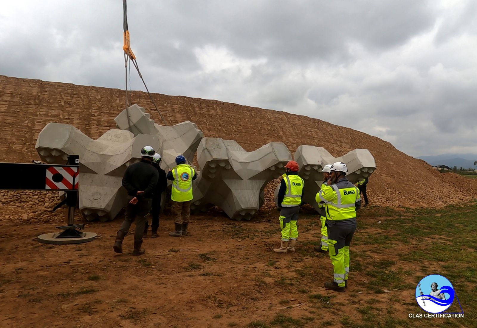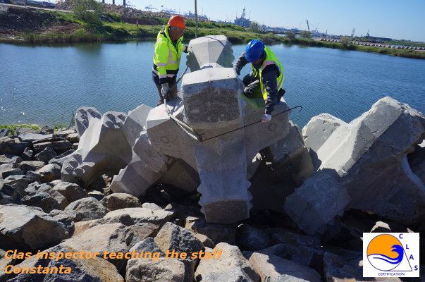 Normalmente se debe desmontar la zona montada en columnas y colocar correctamente estos ACCROPODE™II respetando la malla de tendido. CLAS tiene el saber hacer que permite resolver este tipo de no conformidades sin desmantelar el ACCROPODE™II anterior, en la mayoría de los casos.