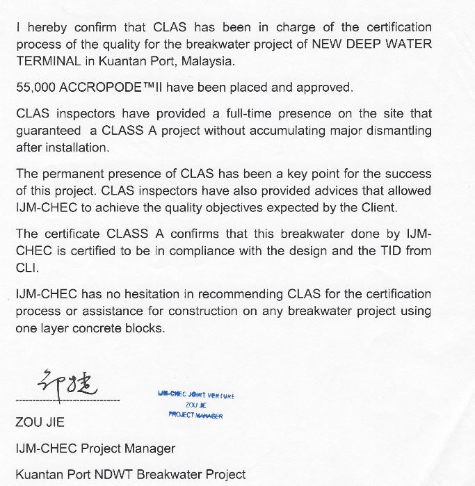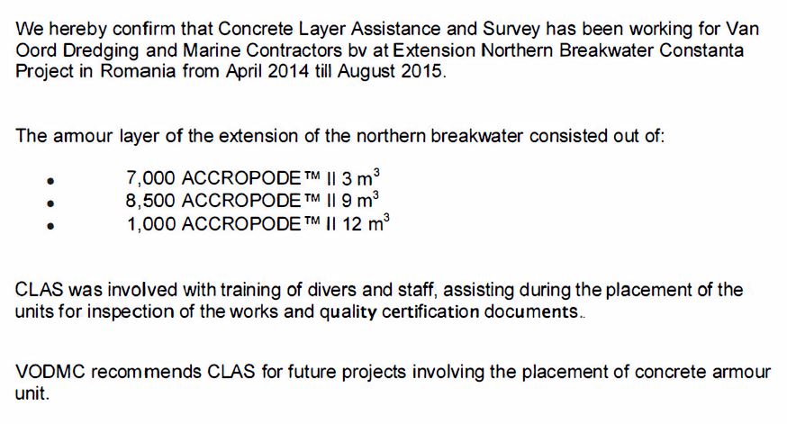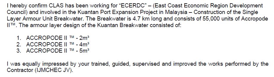 “Quiero agradecerles personalmente la gran contribución al proyecto ZAKUM con la colocación de X-bloc ® y ACCROPODE™II y mantener la buena relación durante la ejecución de las obras, con todos en obra y con el cliente también.
