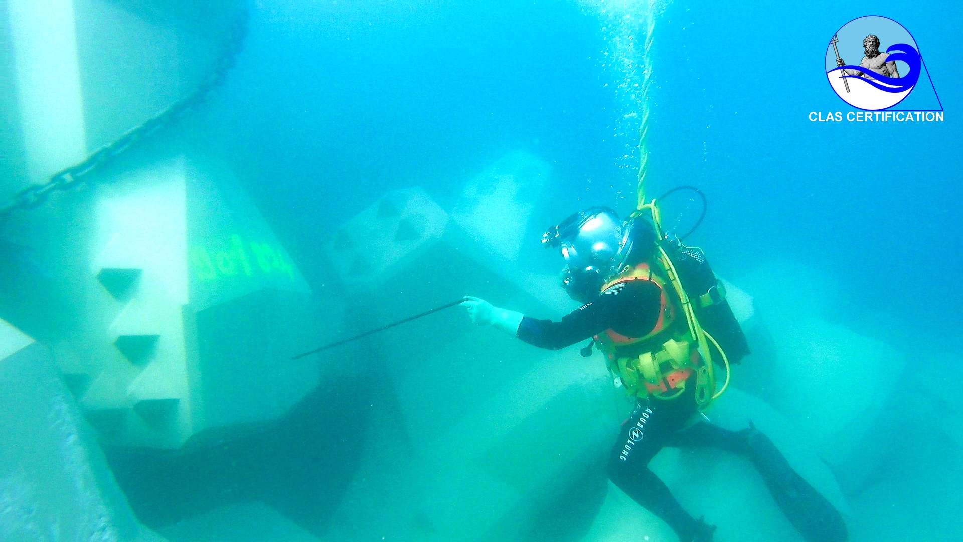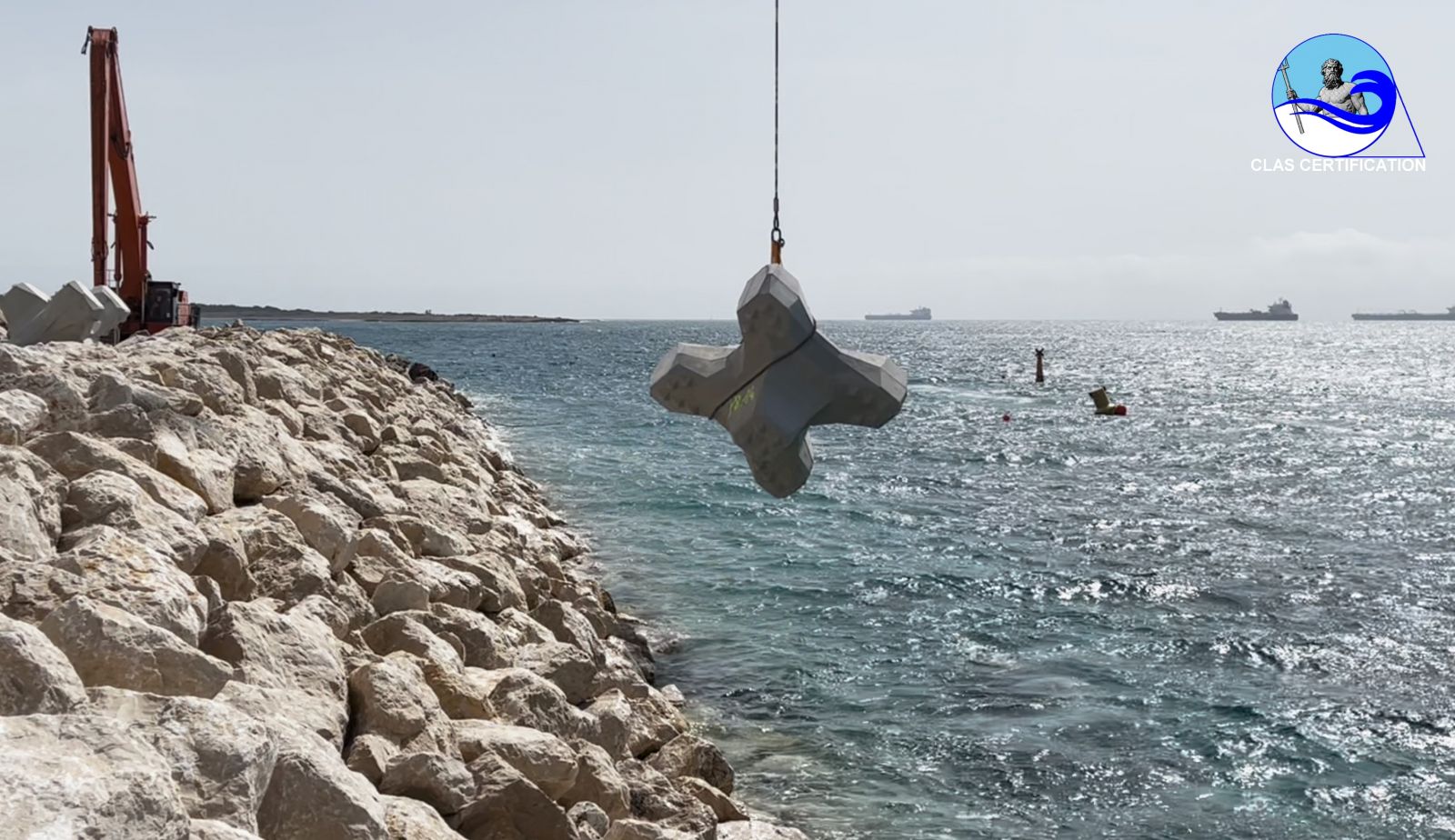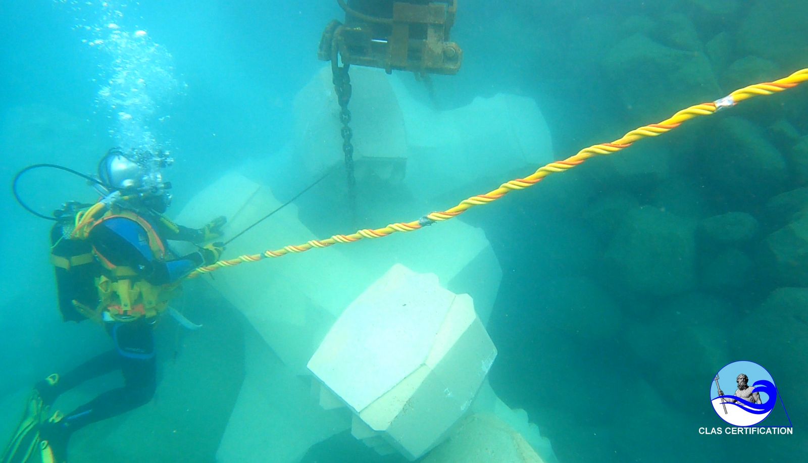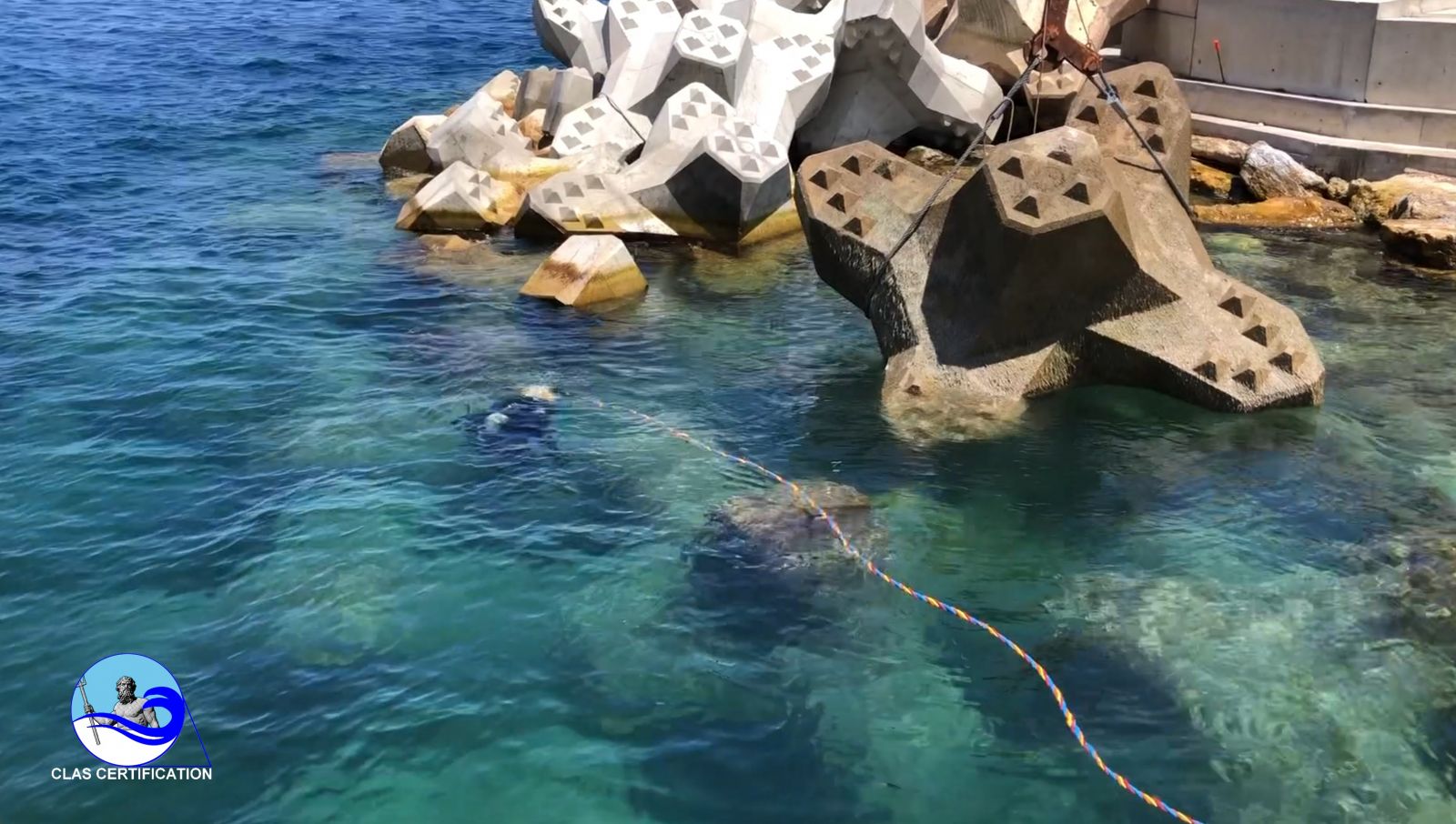 La producción promedio en instalación de grúas de cable con buzos entrenados por CLAS es de 6 a 8 ACCROPODE™II por hora, aprobado.