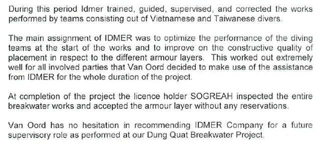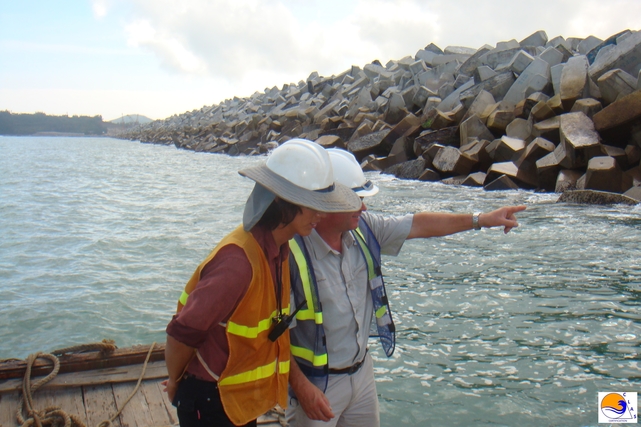 La production est calculée sur la base des heures de pose effectives. Les arrêts pour cause d’intempéries, de pannes et d’une manière générale les causes étrangères à la pose des ACCROPODE™ ne sont pas prises en compte dans ce calcul.Plongeurs Taïwanais et Vietnamien.