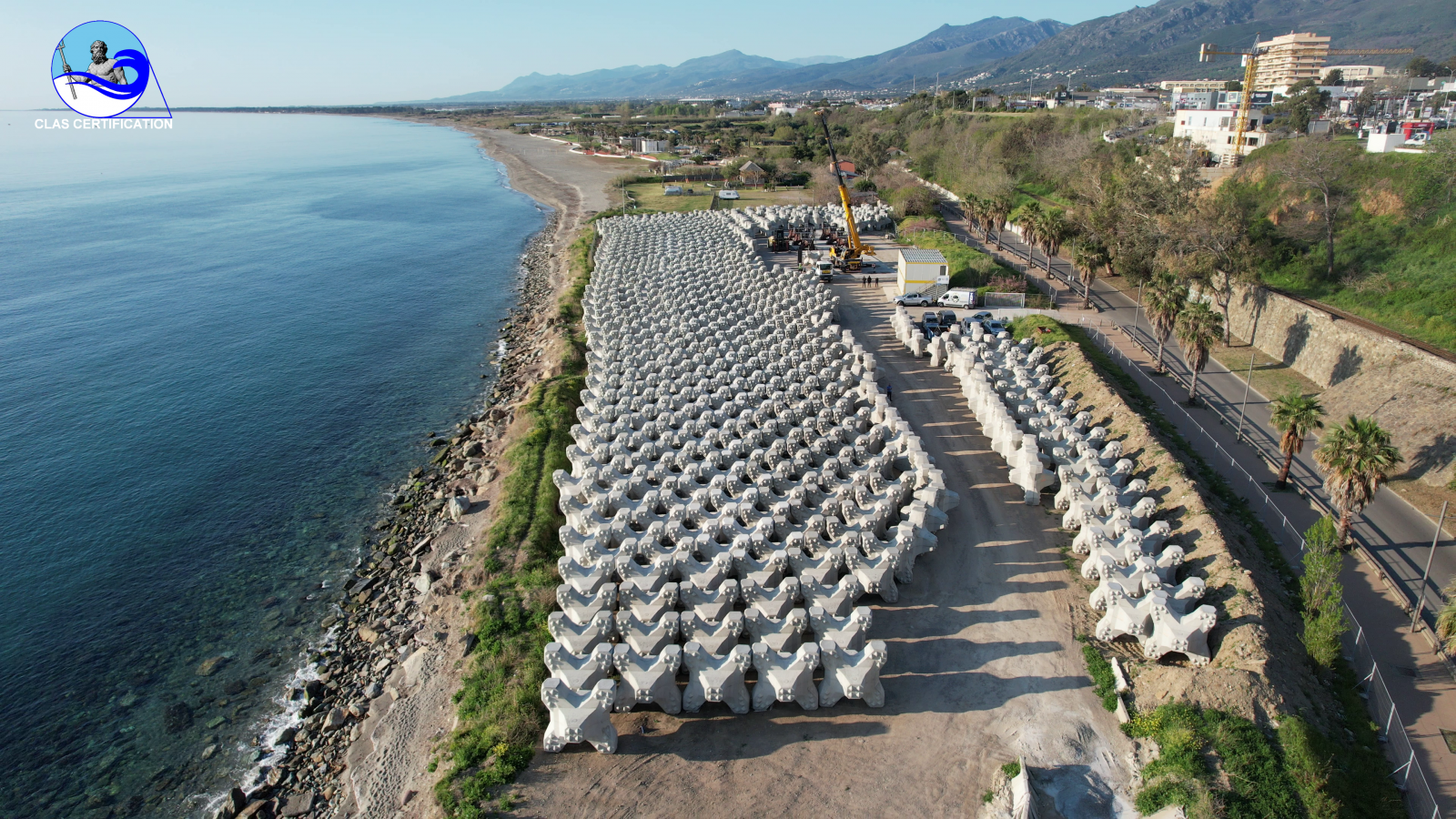 La pose des ACCROPODE™II est contrôlée chaque jour, plusieurs fois si nécessaire, afin d'éviter les démontages.