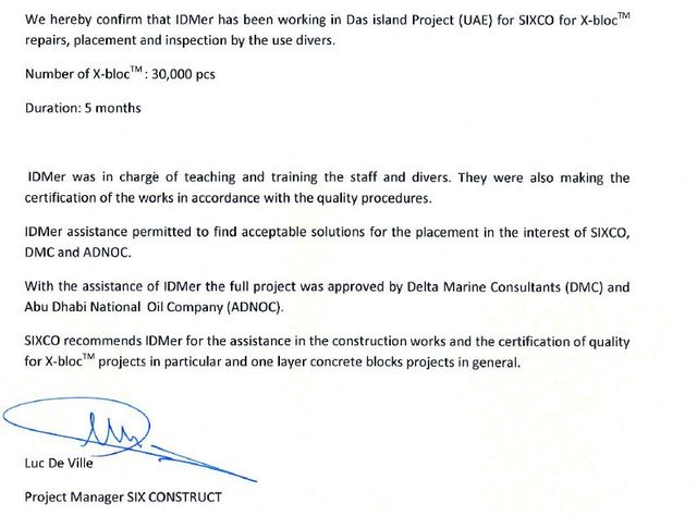 La société SIXCO devait construire l’extension de l’île de DAS et son aéroport avec une protection X-bloc ®. Avant la fin des travaux de construction de la digue il est apparu des tassements et de la casse de X-bloc®, y compris sur des parties déjà approuvées.