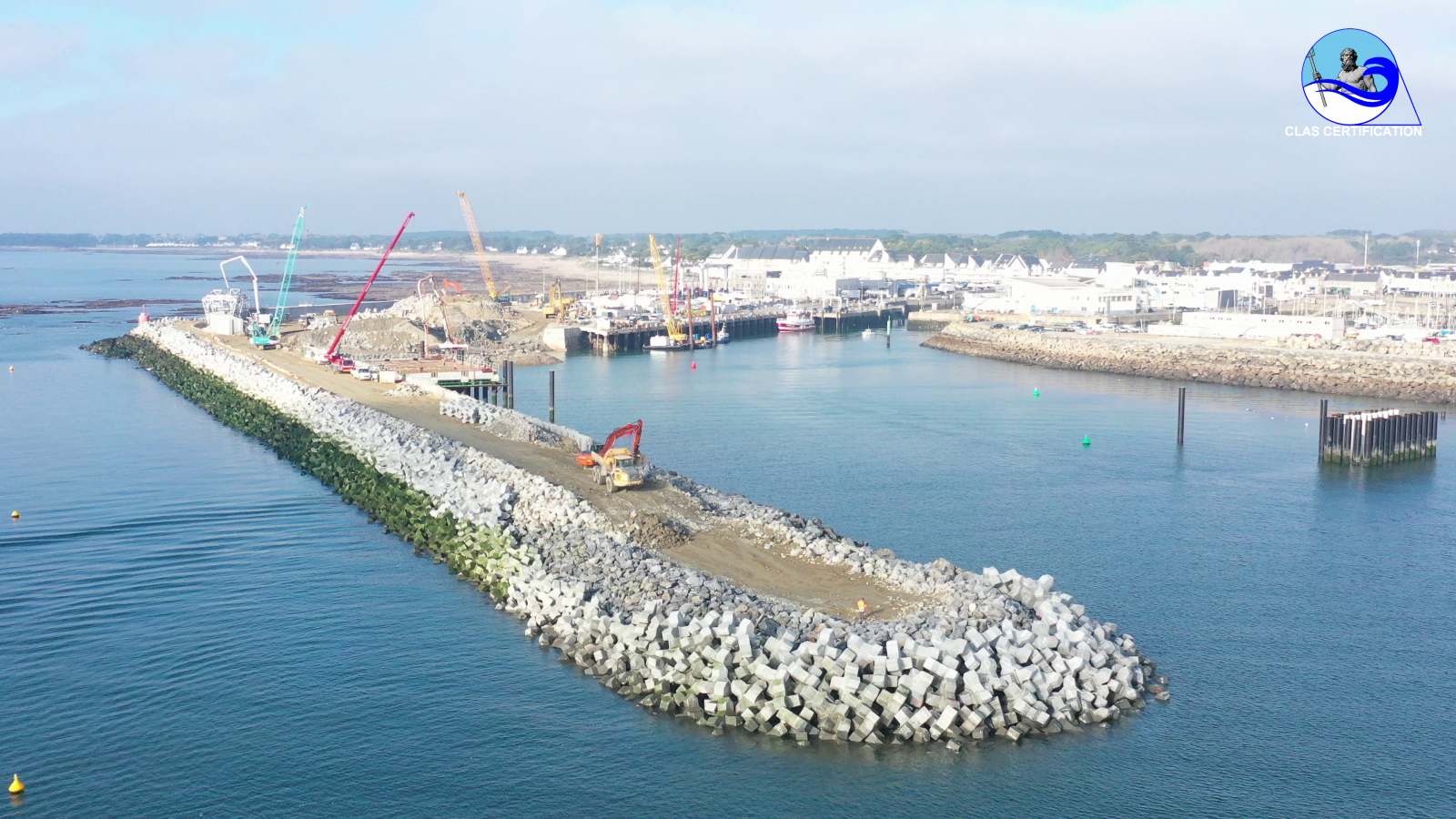 La société CHARIER devait construire la nouvelle digue du port de La turballe, protégée par 4.000 X-bloc ® de 2,5 et 4 m3.
