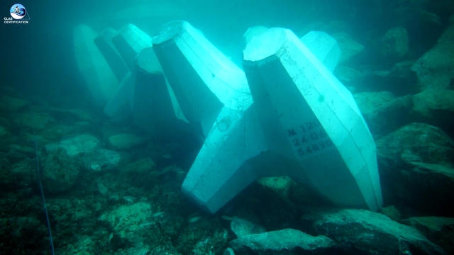 Quand une section complète sort de l’eau, le plongeur fait un examen de cette section. Une vidéo est réalisée perpendiculairement à la pente afin de mettre en évidence la bonne imbrication de chaque bloc. La vidéo est le moyen le plus fiable et le plus sûr de représenter la carapace en montrant la réalité et pas seulement des reconstitutions numériques virtuelles, parfois différentes de la réalité.