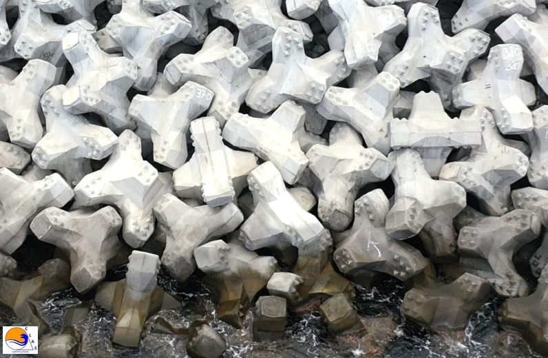 CLAS a été missionnée par le maître d'oeuvre EGIS, pour réaliser une expertise des carapaces ACCROPODE™II, établir les causes de la casse et établir un diagnostic risque des ouvrages.