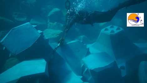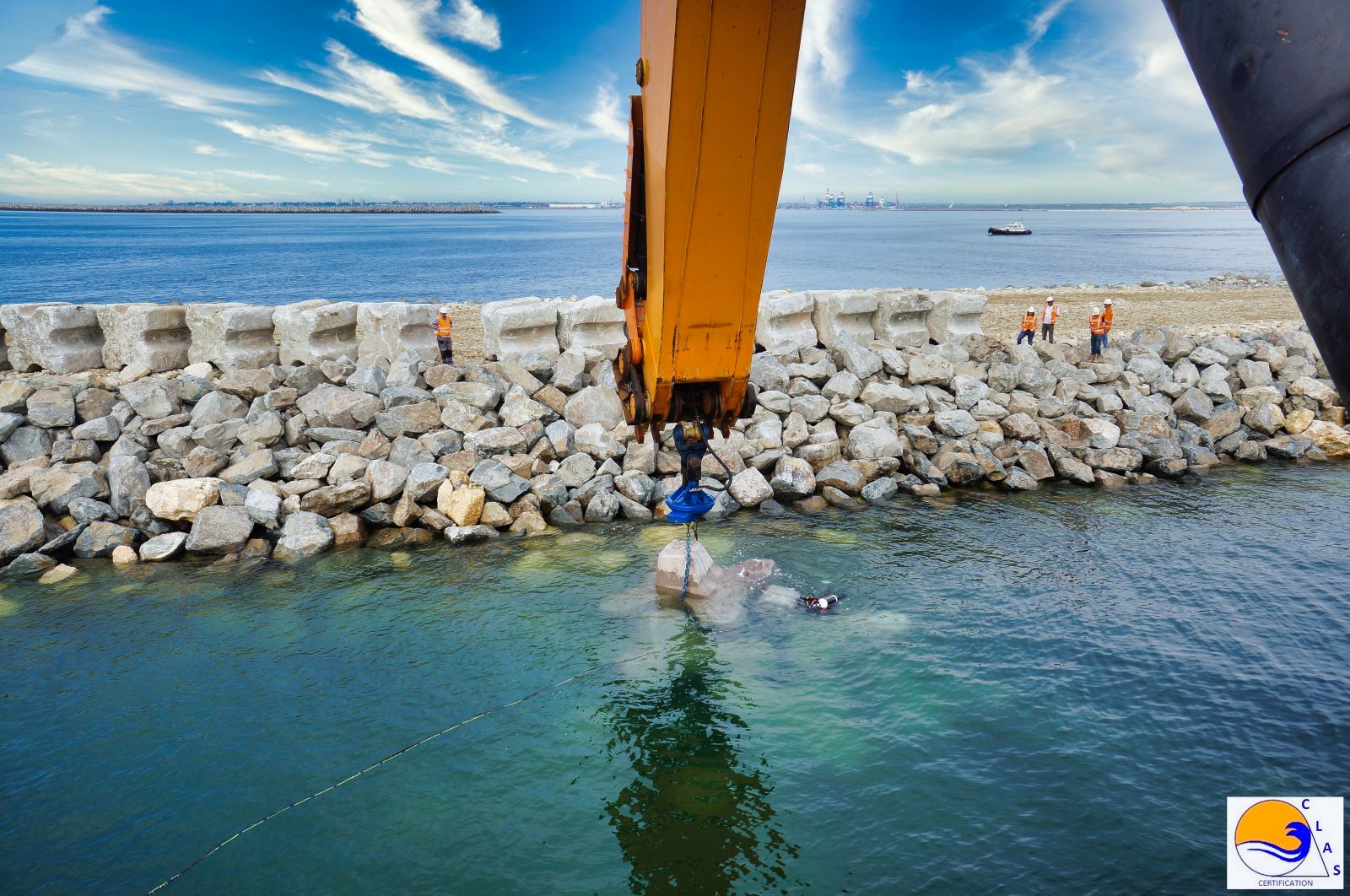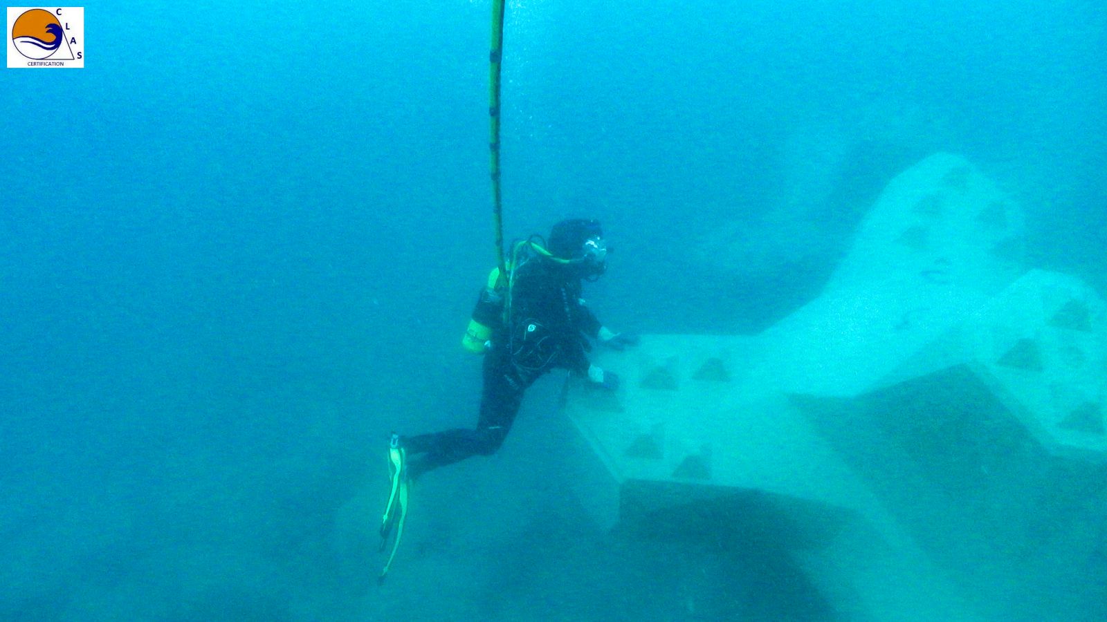 Le « plongeur expérimenté » est en réalité la société IDMer devenue CLAS, qui a fait intervenir une équipe de pose. Nous avons organisé le chantier et réalisé nous-même la pose des blocs ACCROPODE™II en un temps record.