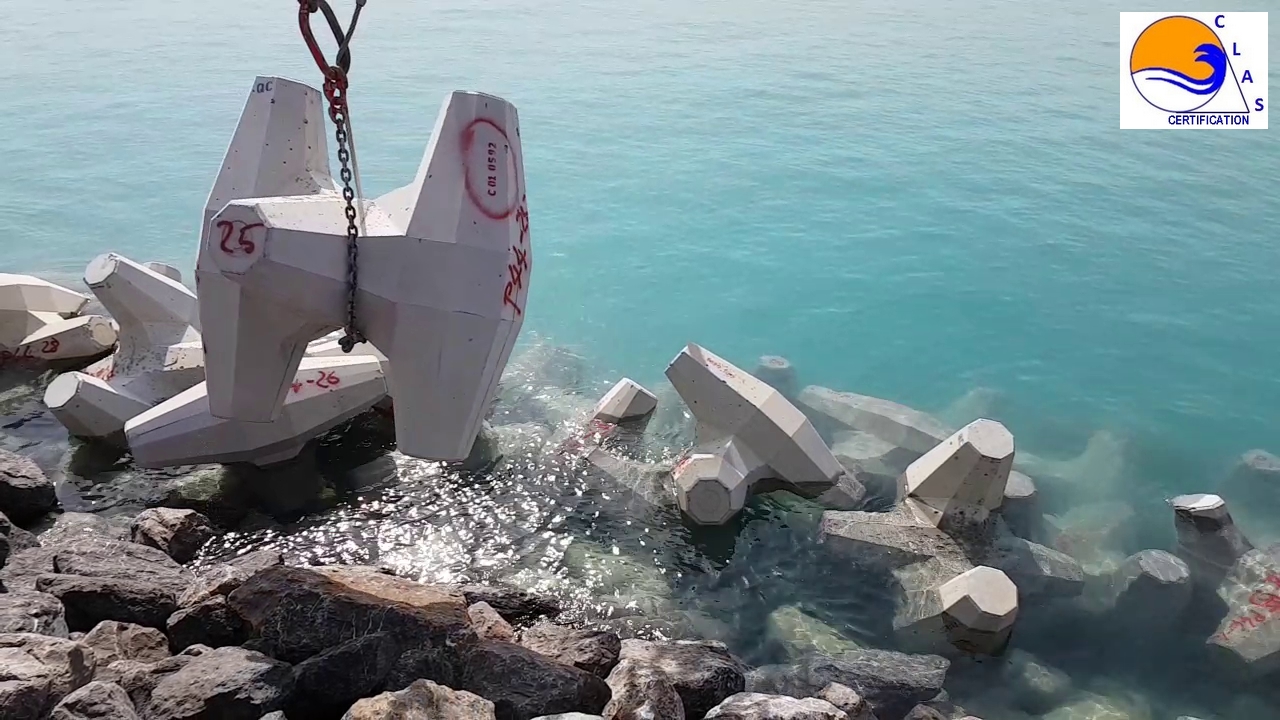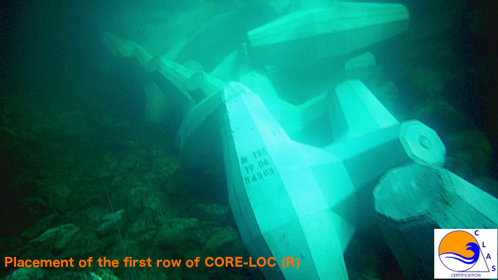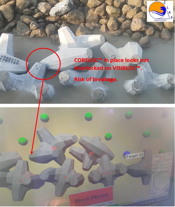 Durant les différents chantiers que nous avons menés avec le CORELOC nous avons constaté qu’il est plus sensible aux chocs que l’ACCROPODE ™. Comme pour l’ACCROPODE™II, il faut éviter les chocs. L’imbrication doit être parfaite pour éviter les mouvements après la pose, qui risquent de provoquer de la casse.