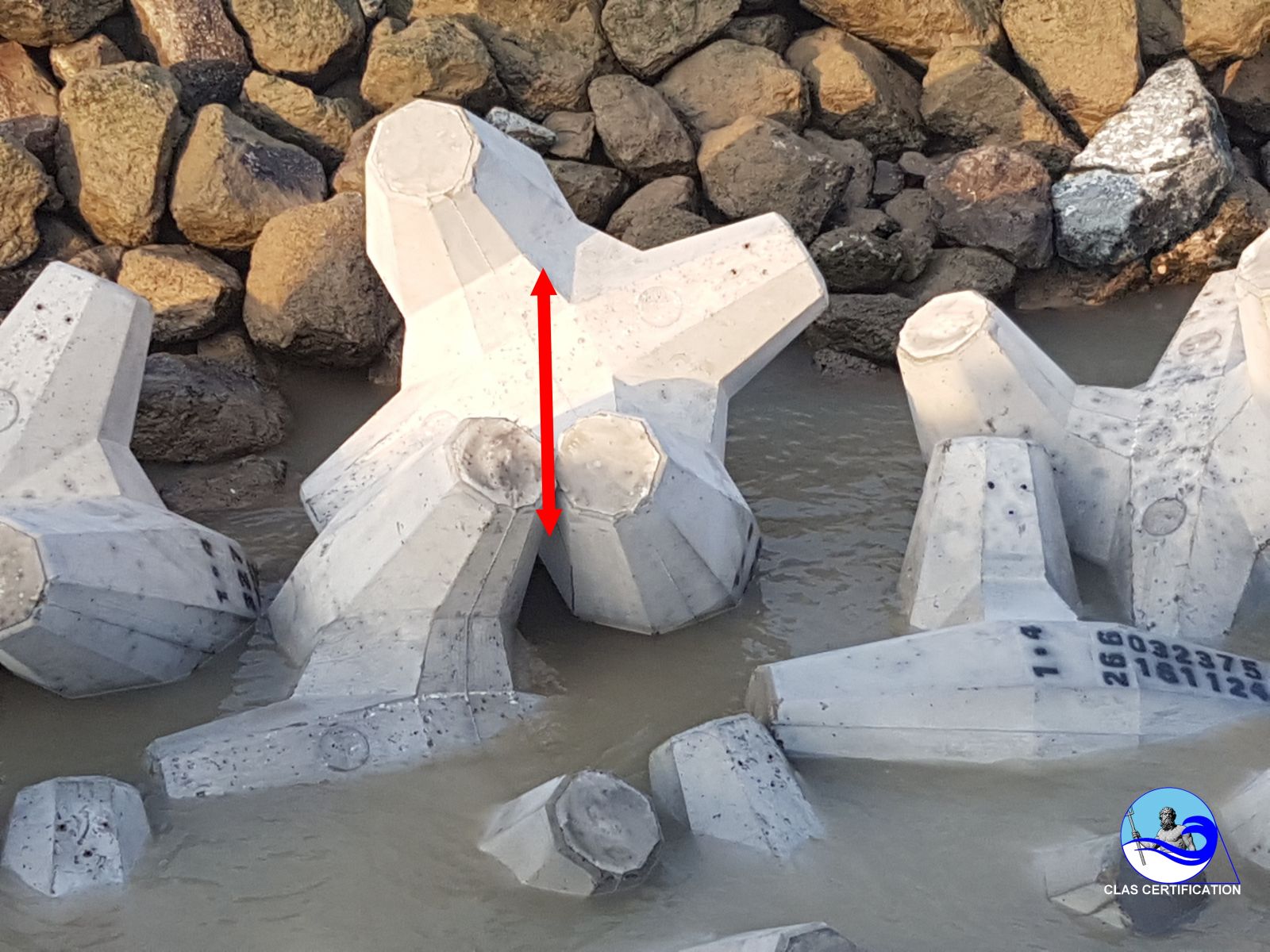 Un CORELOC hors profil peut être extrait par une forte houle. Dans sa chute il risque de briser les CORELOC en-dessous et son extraction provoquera un trou important. Un seul CORELOC hors profil qui est extrait peut amorcer un démaillage de la carapace dans la zone concernée et conduire à un désordre majeur.