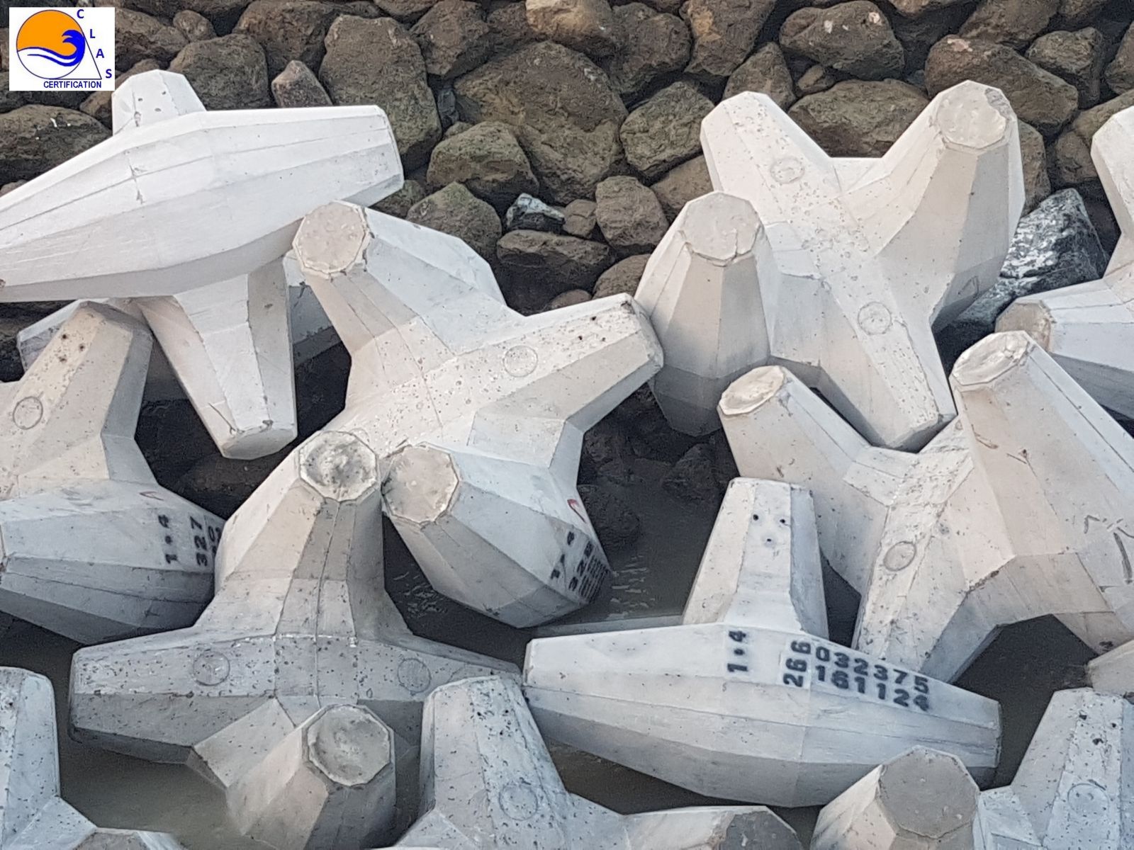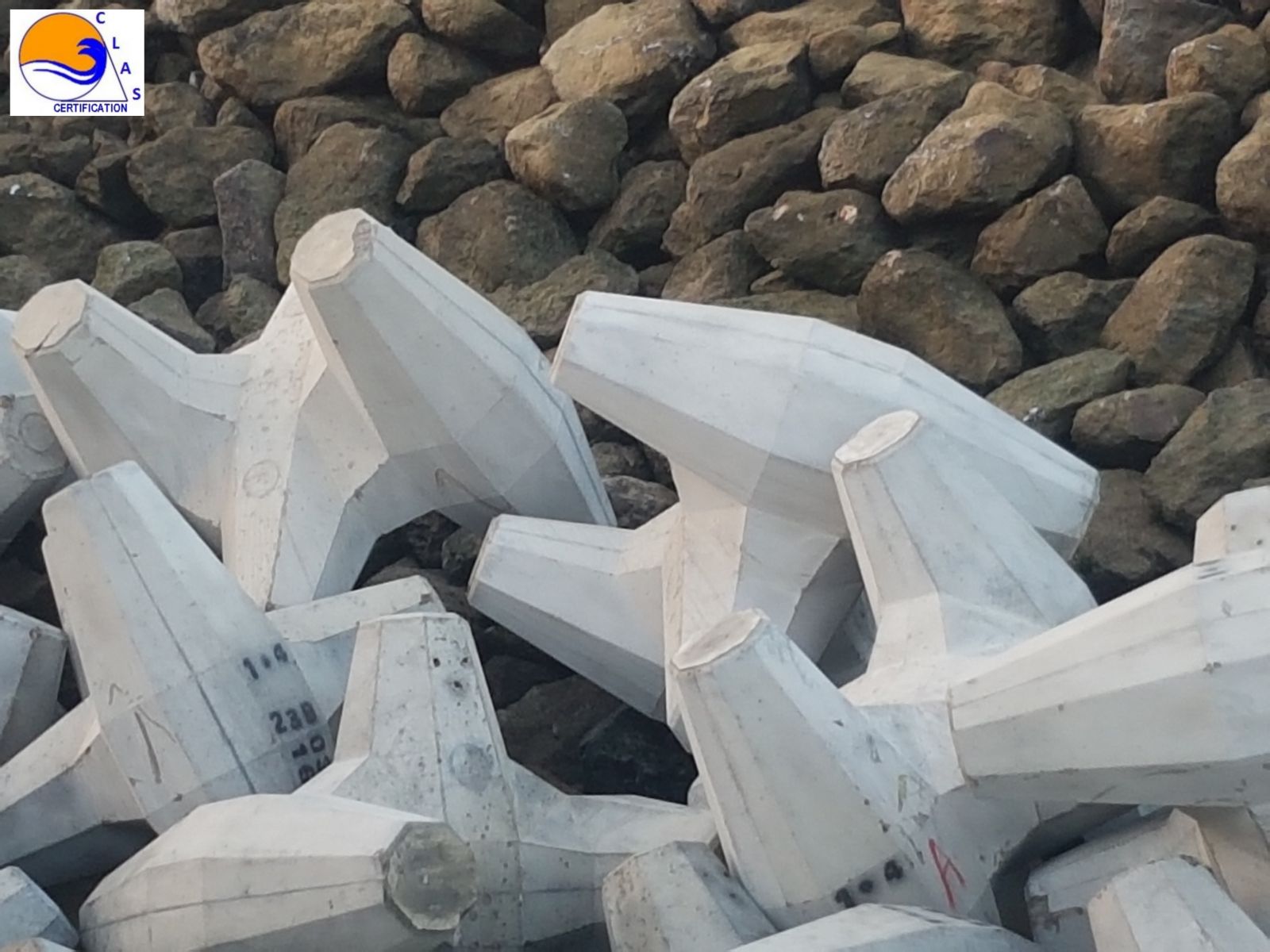 L’action requise dépend de la position de l’CORELOC cassé. Par exemple un CORELOC de la première rangée qui a été cassé par un enrochement de la butée de pied, mais qui est bien bloqué, ne doit pas être remplacé. Si un CORELOC est cassé est en milieu de carapace et ne participe plus à l’imbrication de la zone, il faut alors démonter la zone et remplacer les CORELOC cassés.