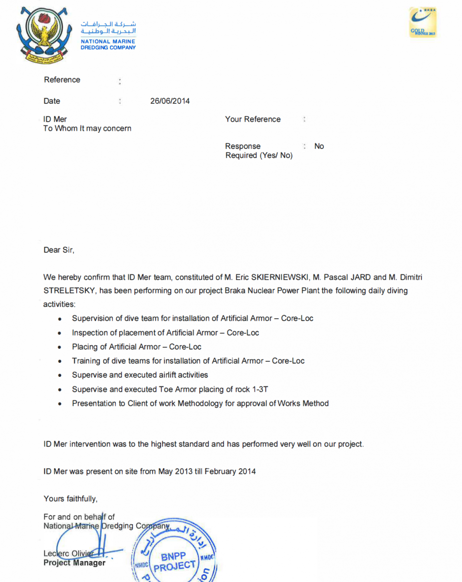 Les inspecteurs d’IDMer, devenue CLAS, on formé correctement les équipes de pose et on supervisé les travaux. Les retards ont été rattrapé et la pose des CORELOC acceptée par le client sans réserve.