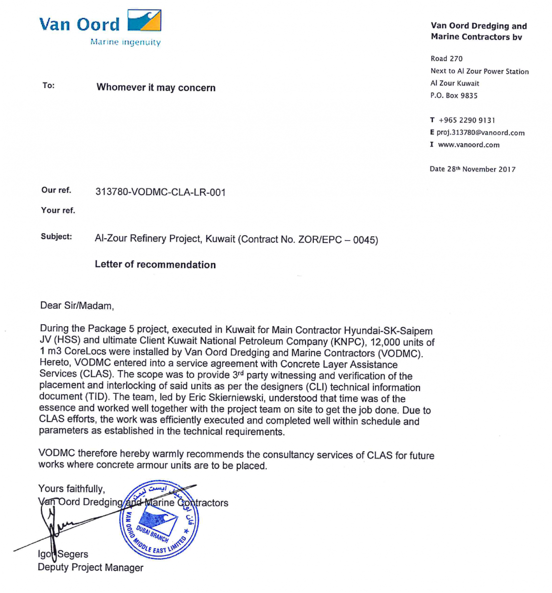 La société VAN OORD devait construire un nouveau port pour la raffinerie d’Al Zour au Koweït.