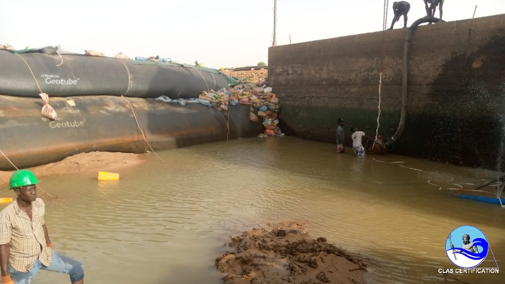 Cette première étape a permi ensuite de positionner les autres géotubes et constituer le barrage.