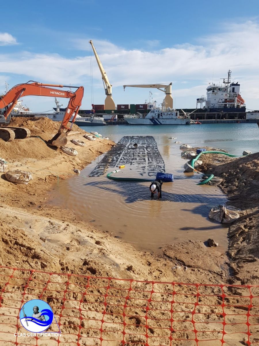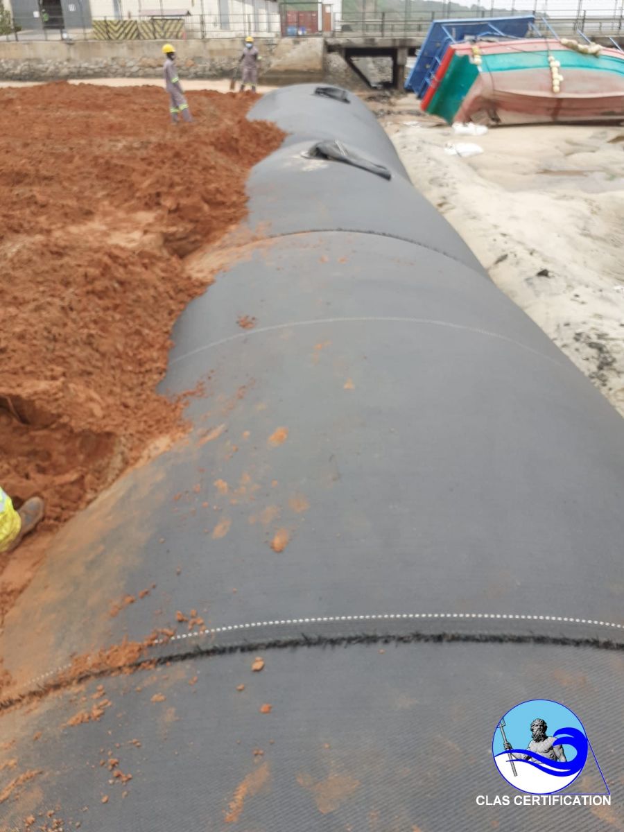 L'utilisation des géotubes® permet la construction très rapide de terre-pleins. Les géotubes® délimitent la surface à construire, de manière étanche et définitve.