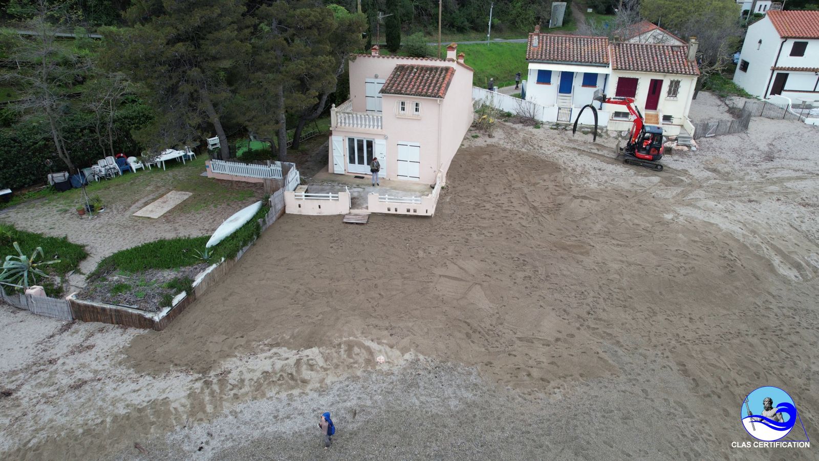 Sur la plage du Racou à Argeles sur Mer, les fortes houles hivernales ont conduit à la destruction de plusieurs villas. La houle a pu déstabiliser les fondations par affouillement et détruire ces maisons.