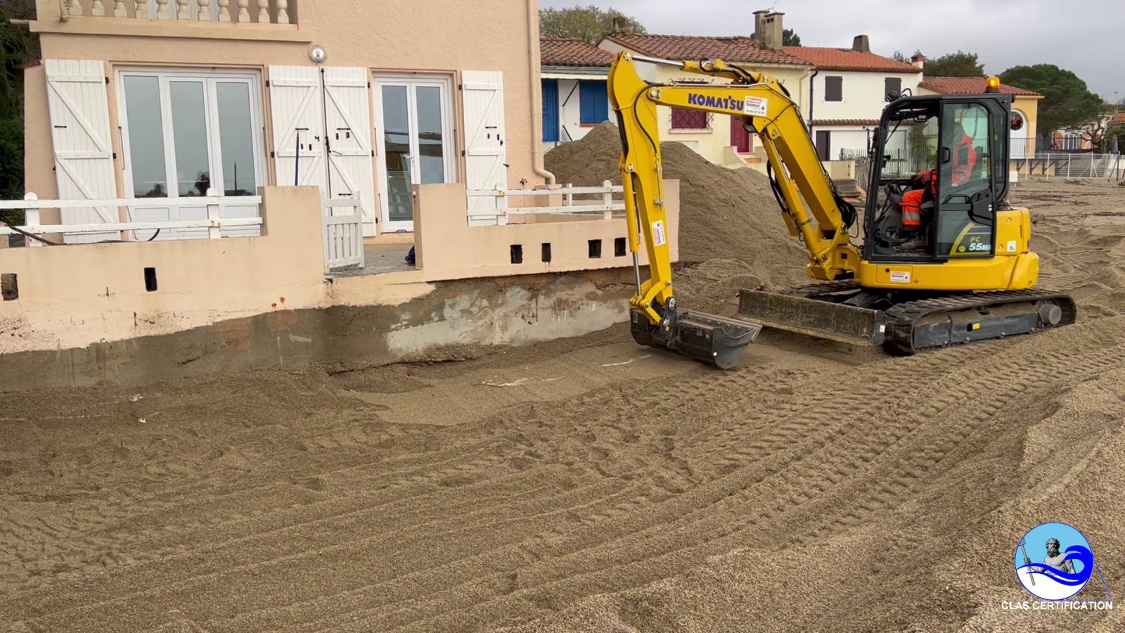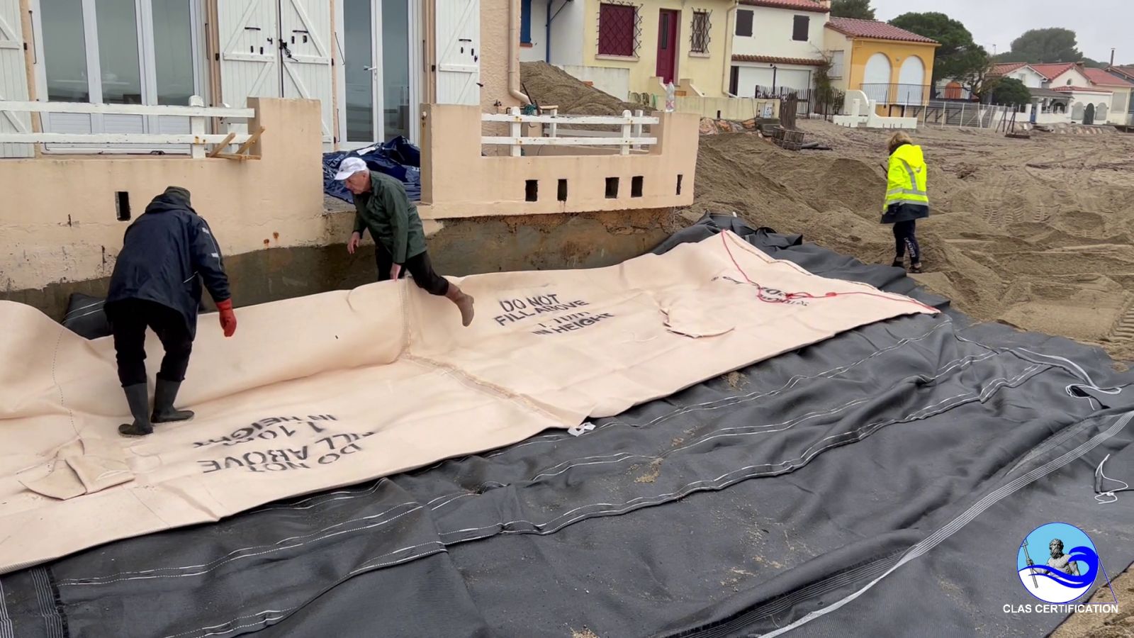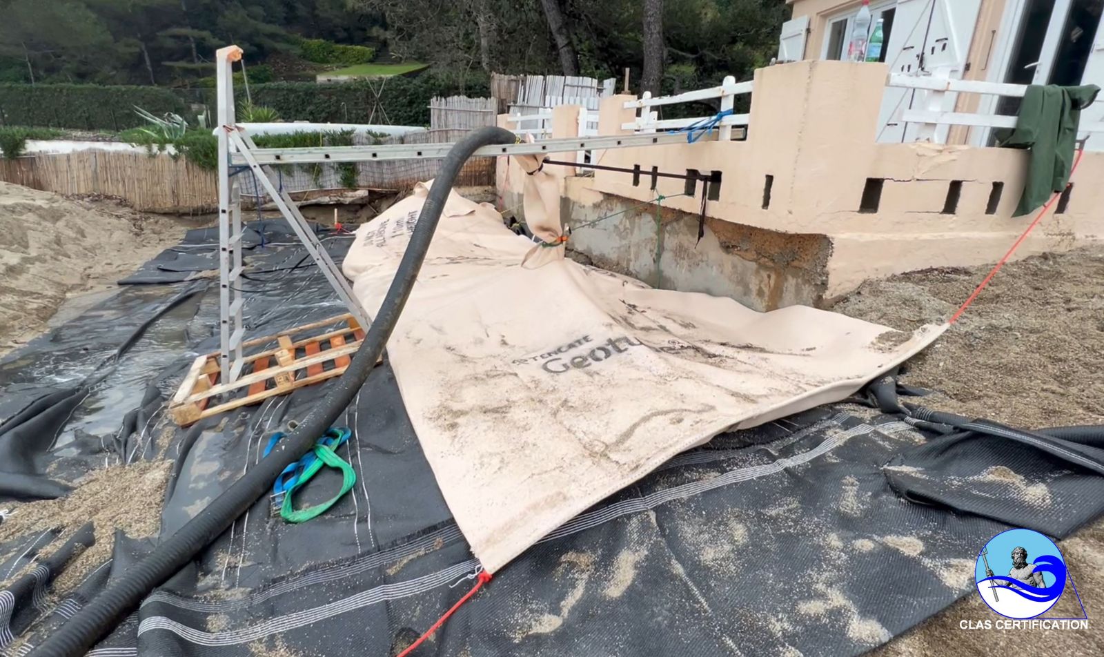 Nous avons réalisé un ouvrage géotube destiné à protéger les fondation d'une villa et empècher ainsi sa destruction par affouillement sous les fondations.